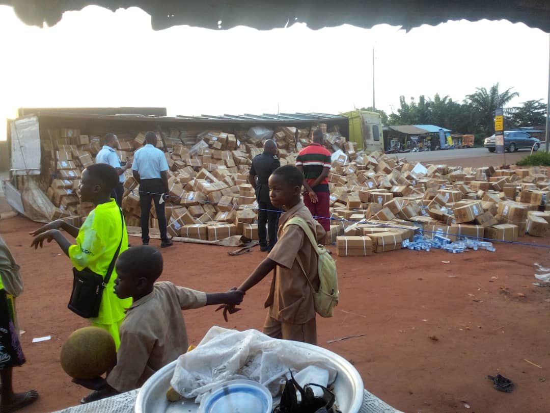 Adja-Ouèrè : un camion chargé de médicaments renversé devant le CEG Ikpinlè