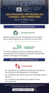 Home Actualités Conseil des ministres : les décisions de ce mercredi 9 octobre ActualitésSociété Conseil des ministres : les décisions de ce mercredi 9 octobre By Jérémie Yenou - 9 octobre 2024 564 0 FacebookTwitterPinterestWhatsApp Voici les grandes lignes des décisions prises en conseil des ministres de ce mercredi 9 octobre 2024.