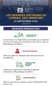 Home Actualités Conseil des ministres : les gros points de ce mercredi 24 septembre ActualitésSociété Conseil des ministres : les gros points de ce mercredi 24 septembre By Jérémie Yenou - 24 septembre 2025 531 0 FacebookTwitterPinterestWhatsApp Voici ci-dessous, les grandes lignes des décisions issues en conseil des ministres de ce mercredi 24 septembre 2025.