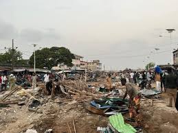 L’épopée marché Missebo est arrivée à son expire. Plus de boutiques ni de hangars, il ne restait que des débris de bois, des tôles rouillés, et des briques cassés. L’ambiance était poussiéreuse et irrespirable. L’opération a attiré commerçants, acheteurs, riverains, chef quartier. Ils observaient la situation avec impuissance sous la supervision des forces de l’ordre, certains vendeurs ce sont même assis sur les restes de leurs anciens points de vente rasés.
