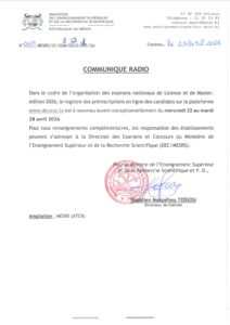 Par communiqué de la Direction des Examens et Concours (DEC), le gouvernement annonce la réouverture exceptionnelle de la plateforme de préinscription en ligne du mercredi 22 au mardi 28 avril 2026. Cette mesure permet aux retardataires de régulariser leur situation sur le portail dédié avant la clôture définitive des listes.