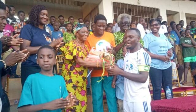A la fin de la rencontre, toutes les équipes qui ont pris part au Tournoi et les arbitres qui ont dirigé les différentes rencontres ont chacun reçu un lot d’équipements sportifs et arbitraux. Après cela, la mémé, veuve de papa Théophile NATA a maintenant remis le trophée de la compétition à l’équipe du 3e arrondissement de Natitingou, sous le regard de l’ancien président de la Cour Suprême, Ousmane BATOKO.