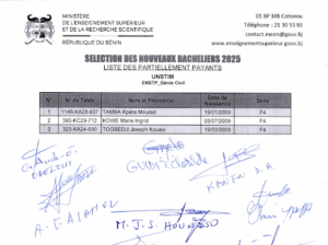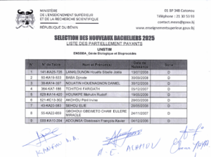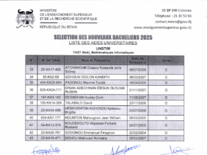 Home Actualités Sélection de nouveaux bacheliers à titres partiellement payant à l’UNSTIM : listes... ActualitésSociété Sélection de nouveaux bacheliers à titres partiellement payant à l’UNSTIM : listes complètes des bénéficiaires By Jérémie Yenou - 13 septembre 2025 448 0 FacebookTwitterPinterestWhatsApp Voici la liste des nouveaux bacheliers bénéficiaires de la bourse à titre partiellement payant pour l’université nationale des Sciences, Technologies, Ingénierie et Mathématiques (UNSTIM).