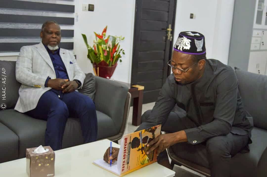 L’écrivain et homme de médias Tiburce était au cabinet du président de la Haute autorité de l’audiovisuel et de la communication ( Haac) ce jour mercredi 02 Octobre 2024. Il est allé dedicacer sa Bande Dessinée Tata Adjatchè au président Édouard Loko. A sa sortie d’audience, il s’est dit heureux d’avoir eu l’occasion de présenter ses félicitations à son aîné et précepteur dans la presse écrite, devenu depuis peu, le président de la plus haute institution de gestion et de régulation des médias au Bénin. » Le défi du président Édouard Loko est celui de toute la presse nationale », a-t-il dit. L’écrivain a dédicacé sa dernière production, la BD Tata Adjatchè, au président de la Haac qu’il remercie pour le soutien qu’il lui a apporté pour la sortie de l’ouvrage.