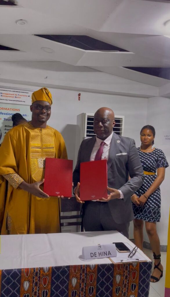 L’Hôtel international Nobila Airport et l’École Supérieure en Management du Tourisme et Hôtellerie-Restauration du Bénin (ESMATH Bénin) ont signé, le 12 septembre 2025, une convention de partenariat. La cérémonie, tenue dans les locaux de l’hôtel à Cotonou, a réuni plusieurs personnalités. Le directeur général de l’ESMATH, Marc Sohounnon, a insisté sur la portée de l’accord. Selon lui, il ne s’agit pas d’une simple collaboration mais d’une alliance stratégique. Nobila Airport devient l’hôtel d’application de l’école. Les étudiants y trouveront bien plus qu’un terrain de stage : un espace où la théorie rencontre la pratique, dans un cadre professionnel exigeant. L’objectif est de former une génération de spécialistes compétents, dotés d’un savoir-faire technique solide et porteurs des valeurs de l’hospitalité béninoise.