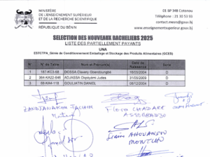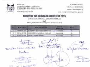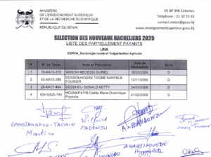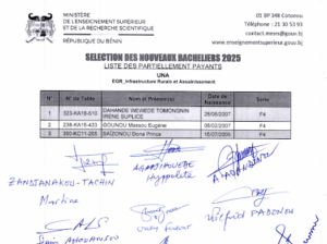 Home Actualités Université Nationale d’Agriculture : les nouveaux bacheliers bénéficiaires de la bourse à... ActualitésSociété Université Nationale d’Agriculture : les nouveaux bacheliers bénéficiaires de la bourse à titre partiellement payant By Jérémie Yenou - 17 septembre 2025 410 0 FacebookTwitterPinterestWhatsApp Voici la liste des nouveaux bacheliers bénéficiaires de la bourse à titre partiellement payant pour l’université Nationale d’Agriculture (UNA).