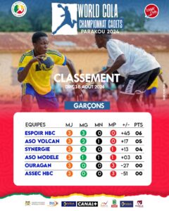 Home Actualités World Cola championnat national des cadets, Parakou 2024 : voici le classement... ActualitésSport World Cola championnat national des cadets, Parakou 2024 : voici le classement après les trois premières journées By Jérémie Yenou - 19 août 2024 415 0 FacebookTwitterPinterestWhatsApp Classement après trois journées de compétition chez les filles comme les garçons. Rejoignez-nous au Centre d’activités sportives ce lundi 19 août pour l’avant dernière journée.
